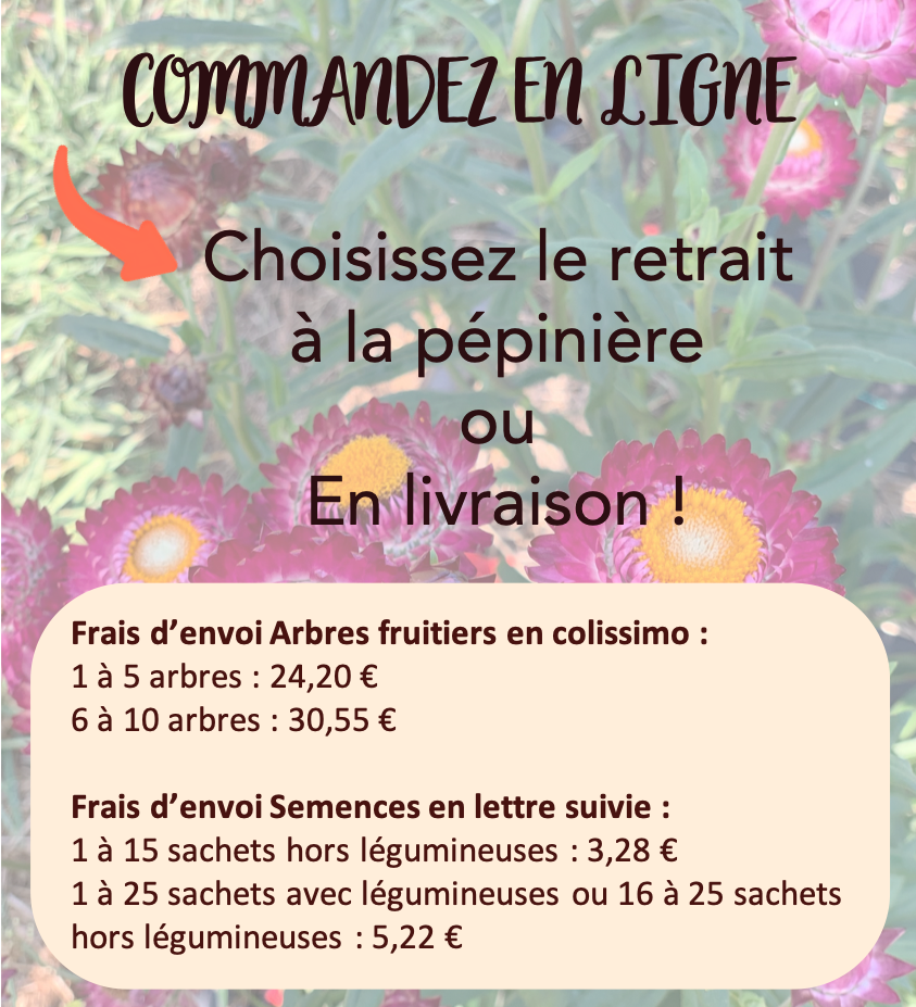 Les fruitiers sont élevés en pleine terre 1 à 2 ans max sous forme de scion (grande tige souple) et vendus en racine nue.