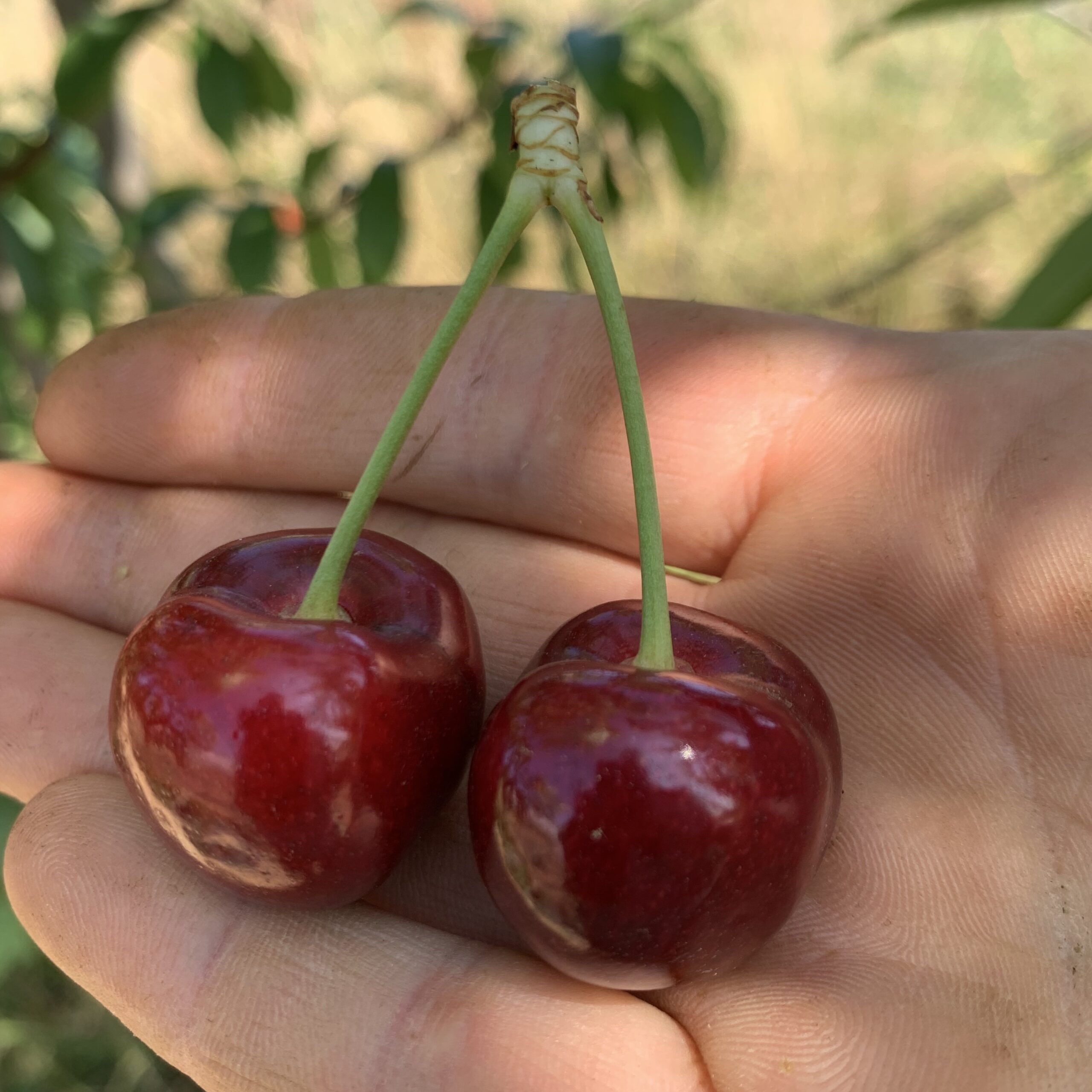 Grosse cerise rouge un peu allongée, croquante et sucrée.