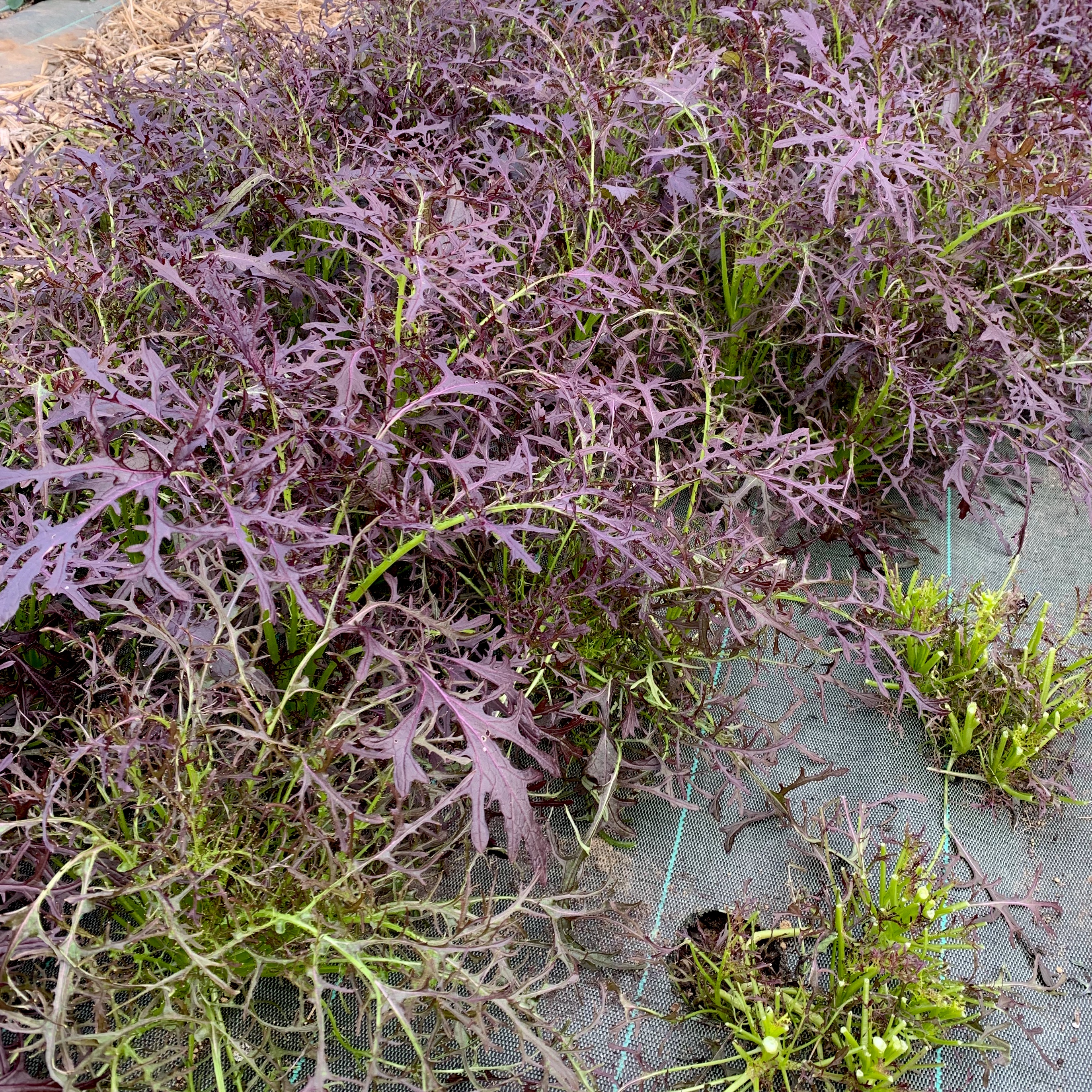 Brassica juncea 1 gramme/sachet Beau feuillage pourpre très découpé qui ravira vos salades. Les feuilles sont croquantes, et à saveur moutardée. Nous la trouvons peu à moyennement piquante. Culture rustique.