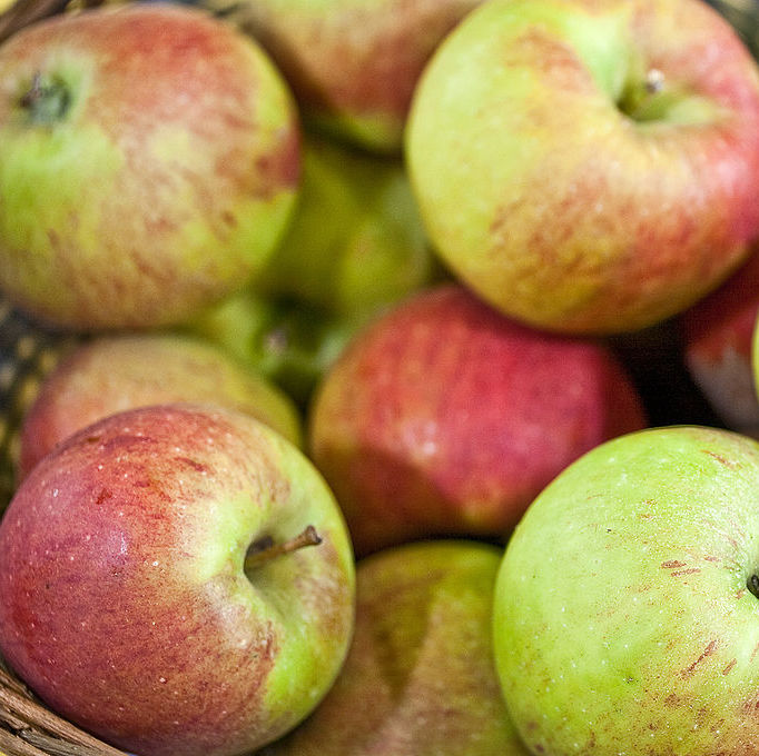 Pomme d'un calibre moyen à gros, la peau est striée de rouge et à fond jaune à maturité. La chair est très croquante, bien sucrée et acidulée. Le parfum rapelle celui de la reine des reinettes.