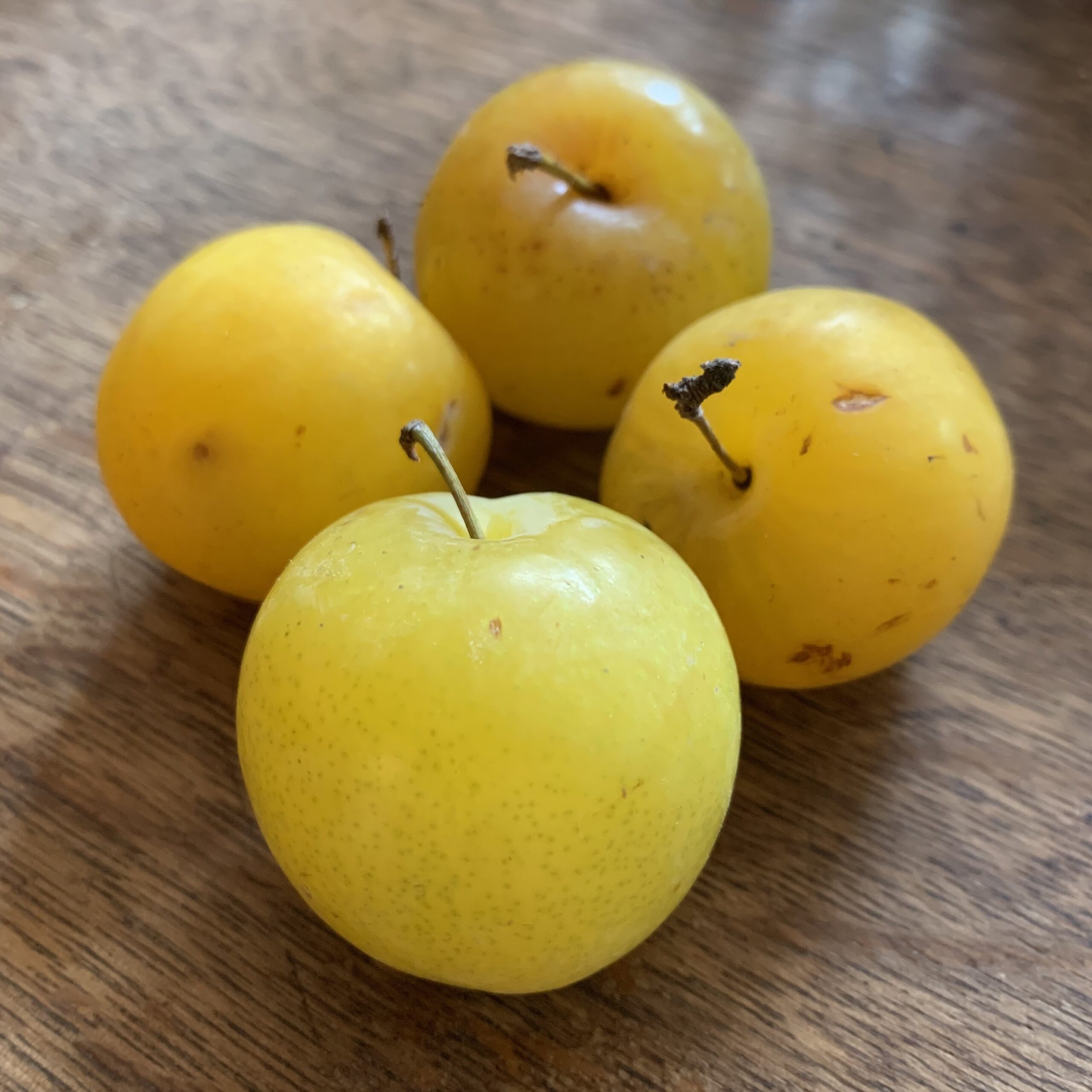 Une grosse prune ronde à peau et à chair jaune. Légèrement acidulée, sucrée et bien juteuse. Noyau plutôt adhérent. Très avantageuse pour sa précocité.