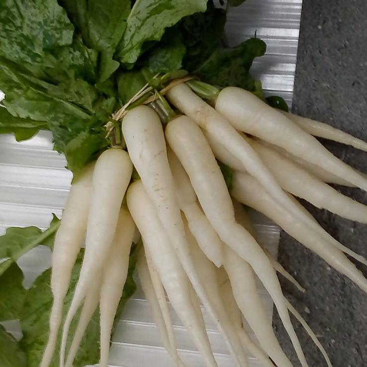 Radis d'hiver possédant une longue racine blanche et croquante. Bonne conservation au frigo, facile à cultiver.