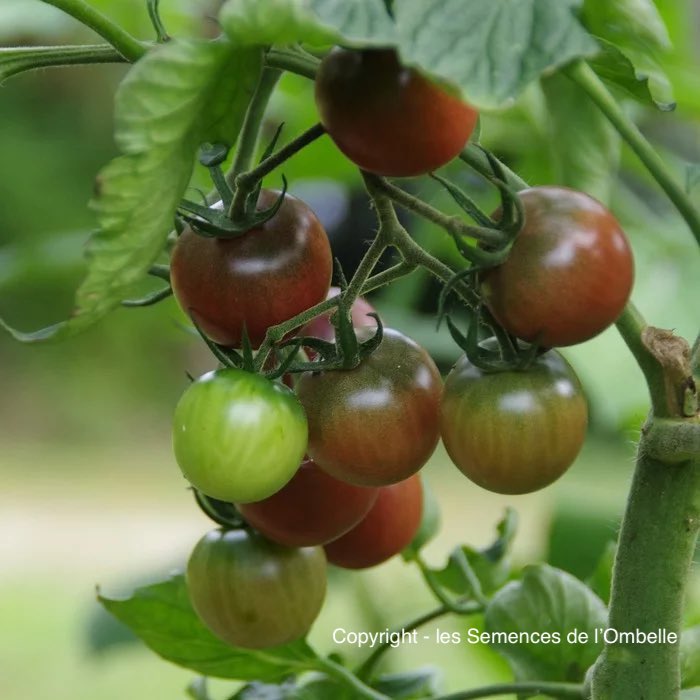 Tomate cerise noire, productive et vigoureuse. Son goût sucré et acidulé est apprécié de toutes et tous. C'est une valeur sûre.