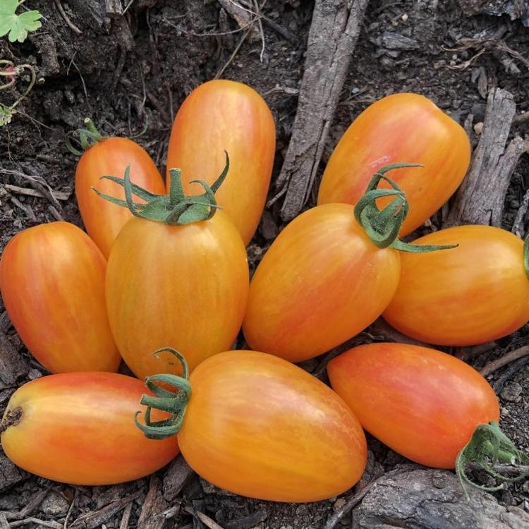 Tomate orange zebrée de rouge de type cocktail, son gôut est exceptionnel. Croquante et sucrée à maturité, elle est parfaite pour l'apéro !! et aussi pour toutes les autres utilisations, notamment le sèchage. C'est une tomate qui offre une production abondante avec des nombreuses grappes bien remplies tout au long de la saison. Elle est résistante et se conserve bien.